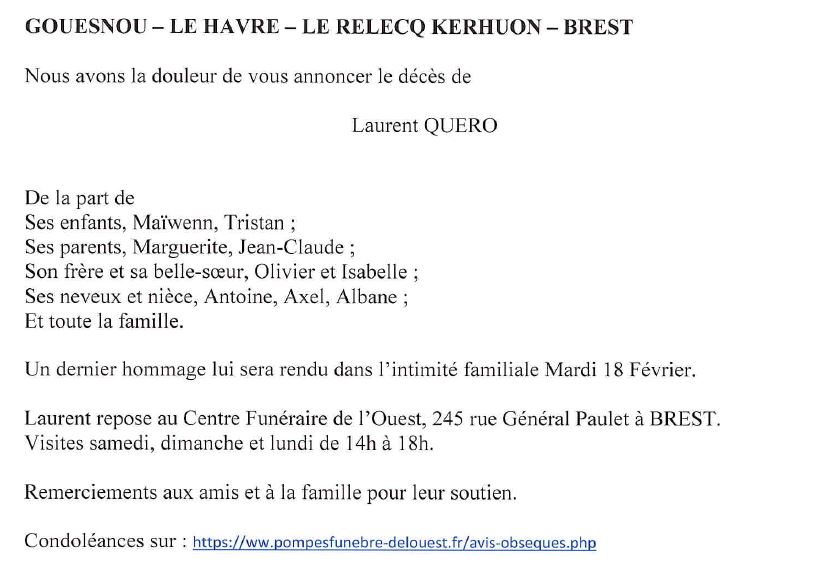 Cet espace « condoléances » est dédié à la mémoire de Monsieur Laurent QUERO.