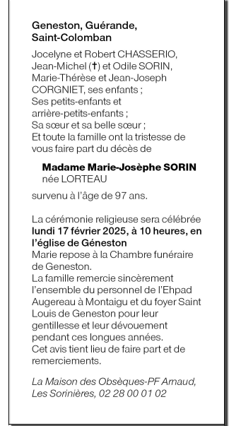 de Madame Marie SORIN née LORTEAU