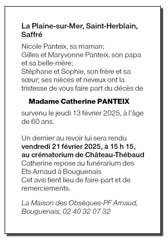 de Madame Catherine PANTEIX