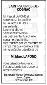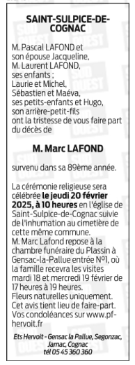Cet espace « condoléances » est dédié à la mémoire de Monsieur Marc LAFOND.