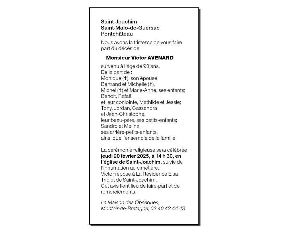 Décédé à Saint-Joachim (44720) le dimanche 16 février 2025