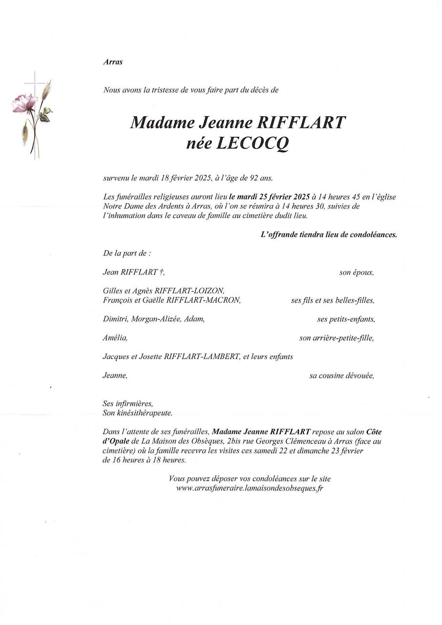 de Madame Jeanne RIFFLART née LECOCQ