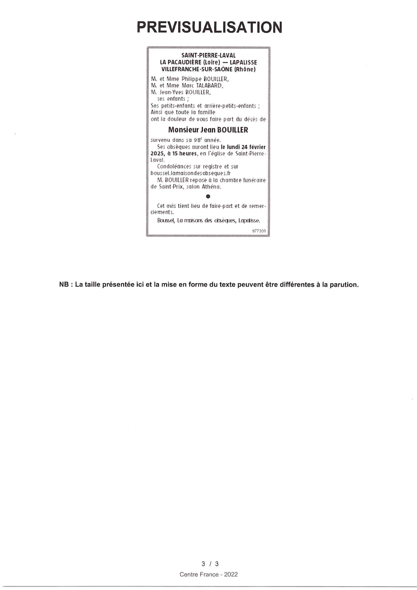 Cet espace « condoléances » est dédié à la mémoire de Monsieur Jean BOUILLER.