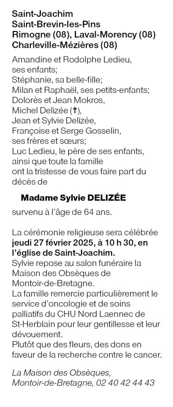 Cet espace « condoléances » est dédié à la mémoire de Madame Sylvie DELIZÉE.