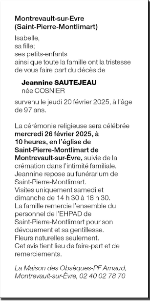 de Madame Jeannine SAUTEJEAU née COSNIER