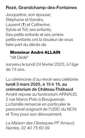 Cet espace « condoléances » est dédié à la mémoire de Monsieur André ALLAIN.