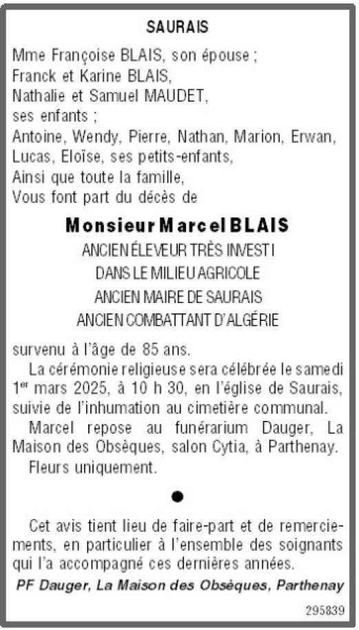 de Monsieur Marcel BLAIS