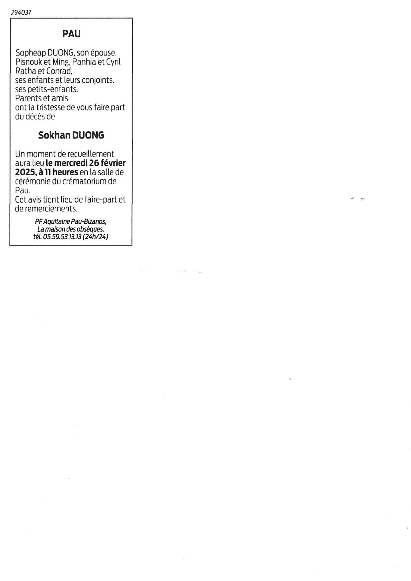 Cet espace « condoléances » est dédié à la mémoire de Monsieur Sokhan DUONG.