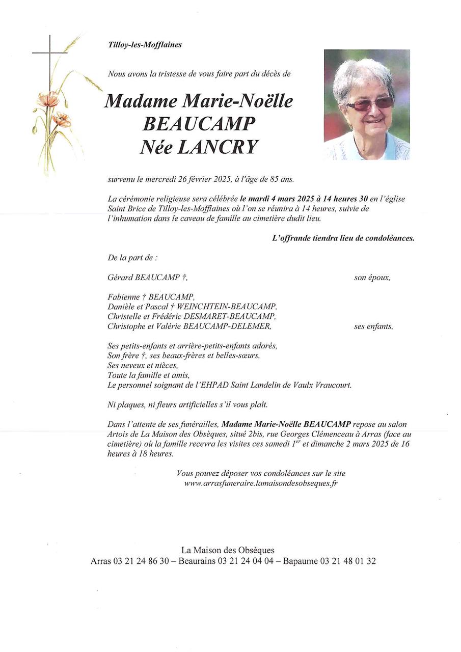 de Madame Marie-Noëlle BEAUCAMP née LANCRY