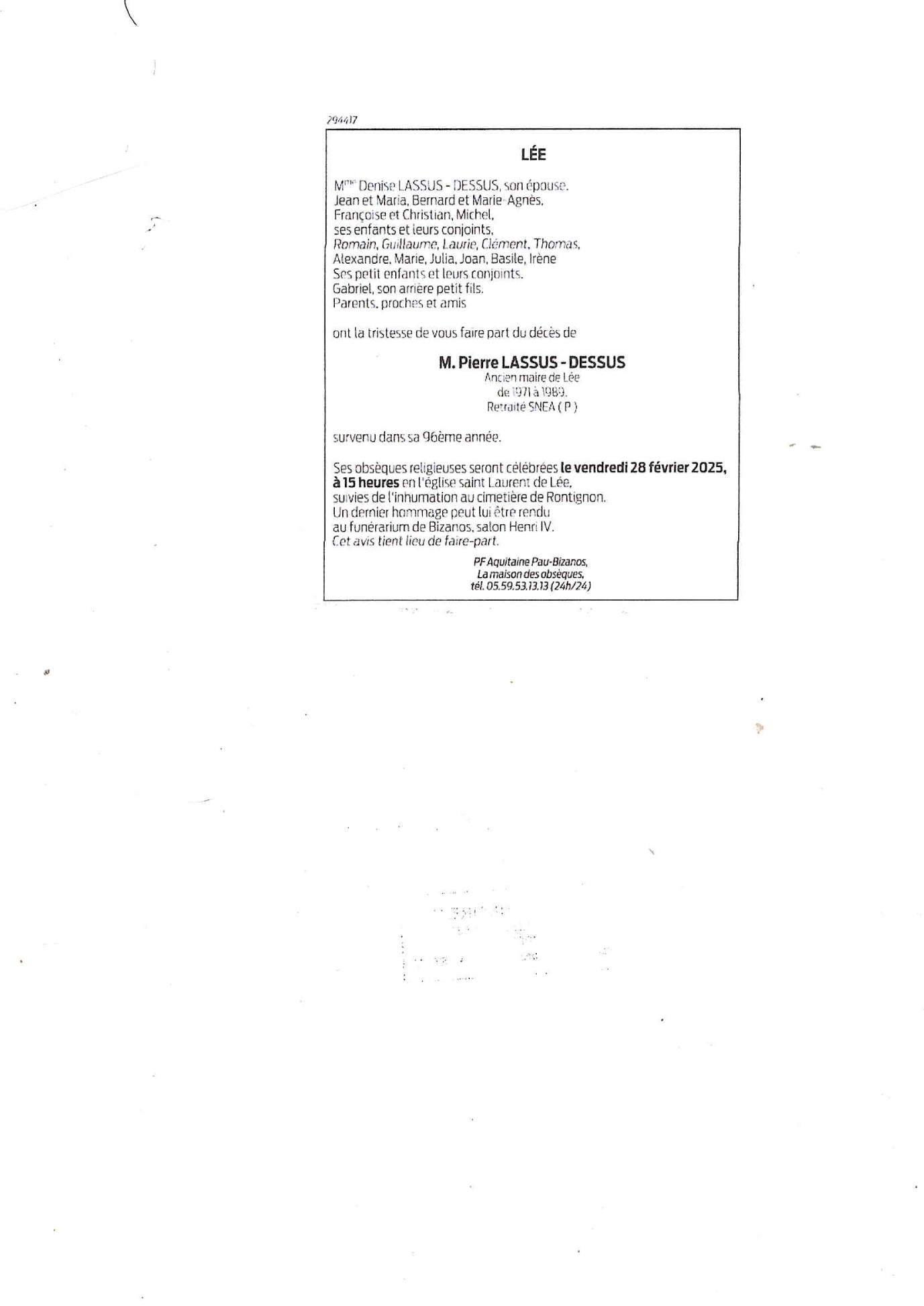 Cet espace « condoléances » est dédié à la mémoire de Monsieur Pierre LASSUS - DESSUS.