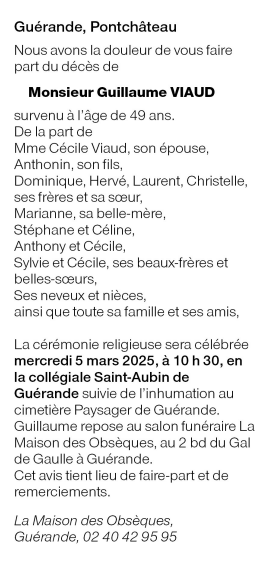 Cet espace « condoléances » est dédié à la mémoire de Monsieur Guillaume VIAUD.