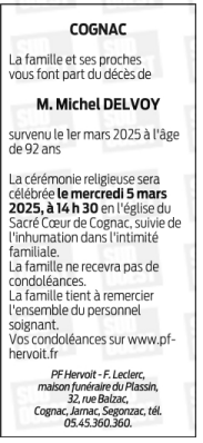 Cet espace « condoléances » est dédié à la mémoire de Monsieur Michel DELVOY.