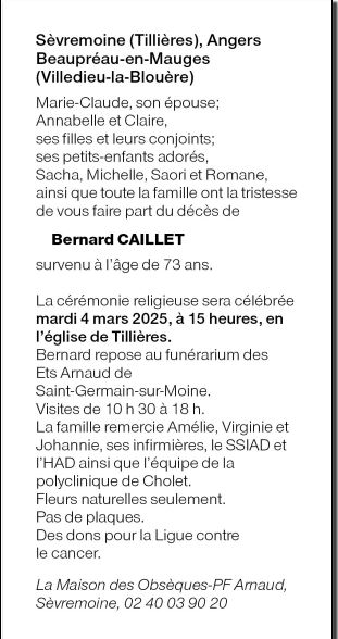 Cet espace « condoléances » est dédié à la mémoire de Monsieur Bernard CAILLET.