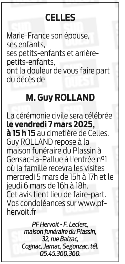Cet espace « condoléances » est dédié à la mémoire de Monsieur Guy ROLLAND.