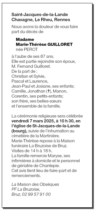 de Madame Marie-Thérèse GUILLORET née PEROT