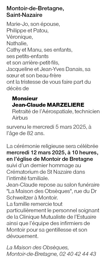 Cet espace « condoléances » est dédié à la mémoire de Monsieur Jean-Claude MARZELIERE.