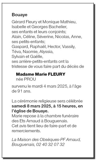 de Madame Marie FLEURY née PROU