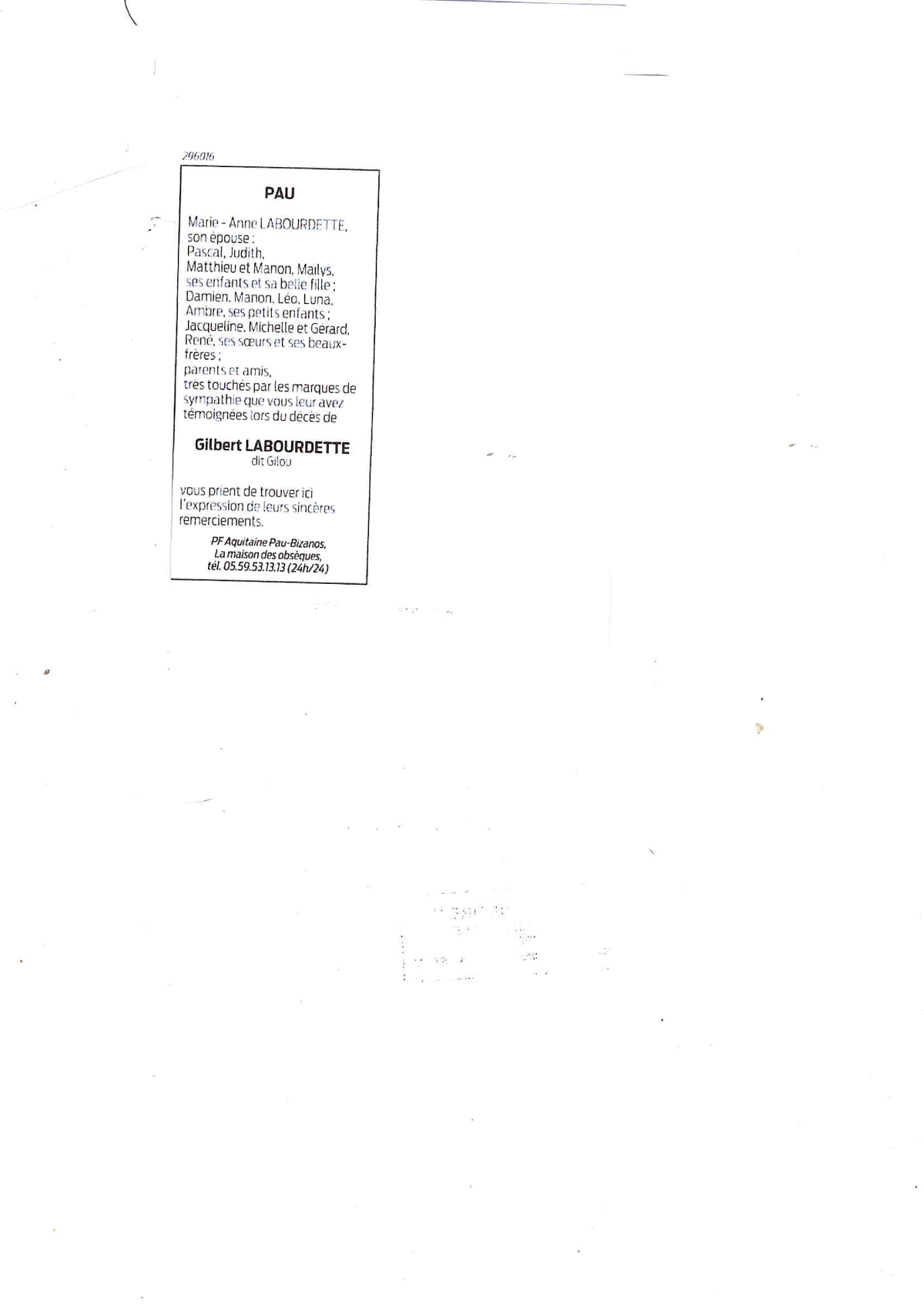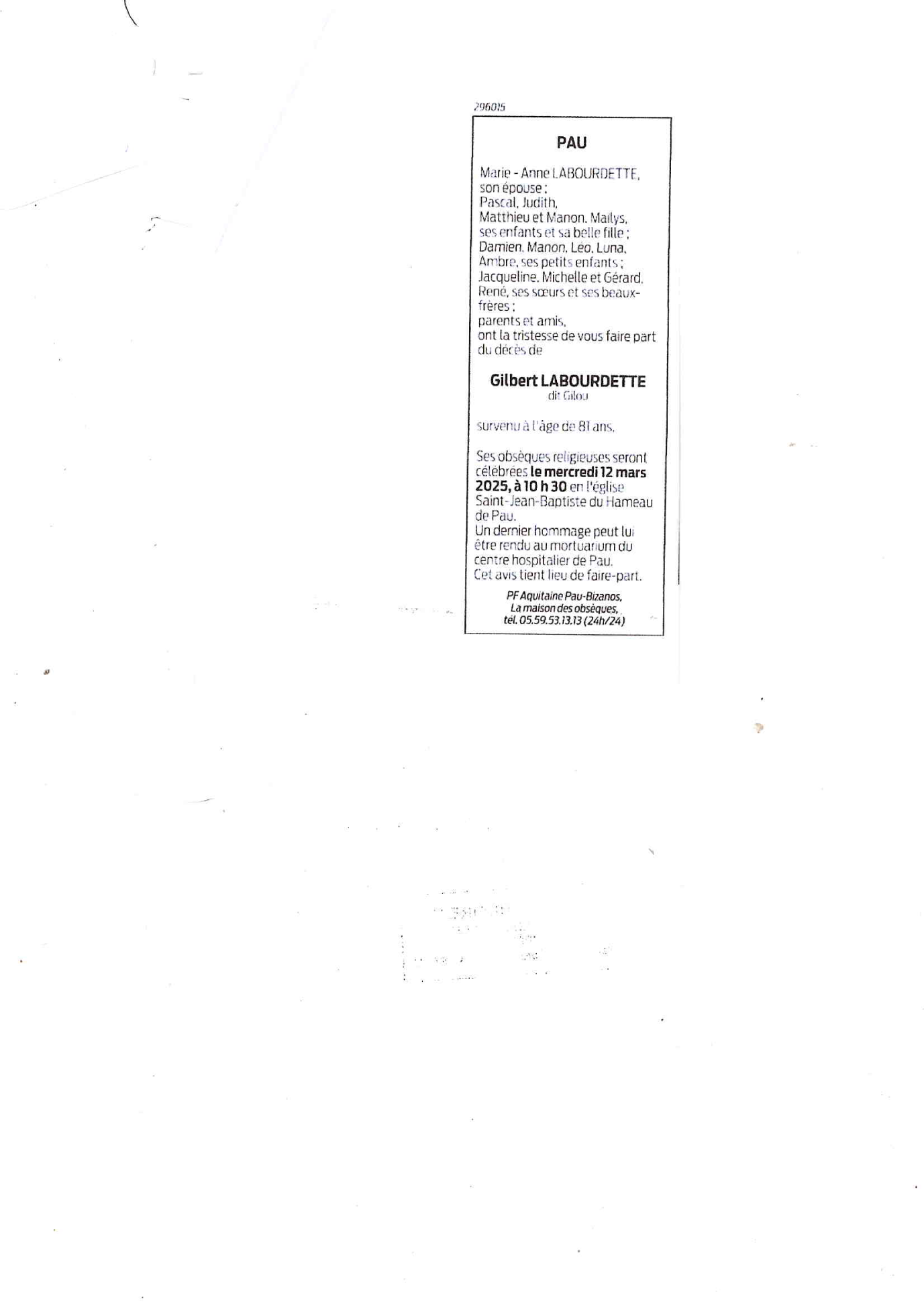 Cet espace « condoléances » est dédié à la mémoire de Monsieur Gilbert LABOURDETTE.