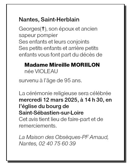 de Madame Mireille MORILLON née VIOLEAU