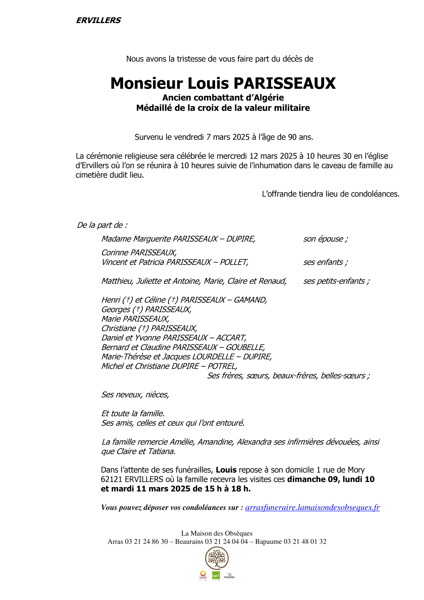 Cet espace « condoléances » est dédié à la mémoire de Monsieur Louis PARISSEAUX.
