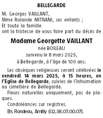 Décédée à Bellegarde (45270) le samedi 8 mars 2025