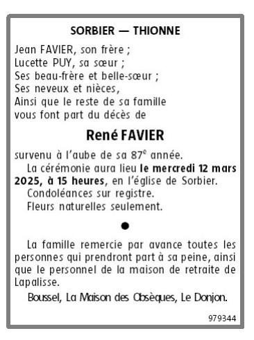 Cet espace « condoléances » est dédié à la mémoire de Monsieur René FAVIER.