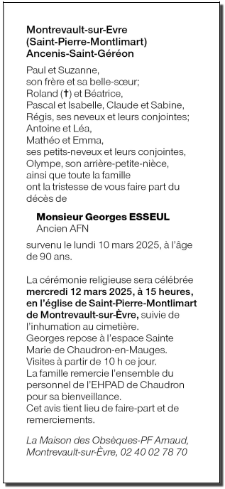de Monsieur Georges ESSEUL