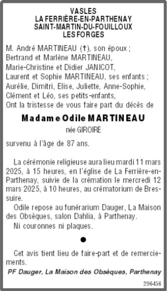 de Madame Odile MARTINEAU née GIROIRE