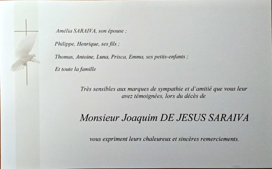 Cet espace « condoléances » est dédié à la mémoire de Monsieur Joaquim DE JESUS SARAIVA.