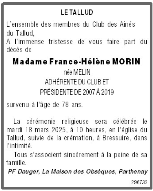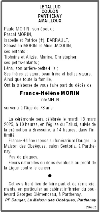 de Madame France-Hélène MORIN née MELIN
