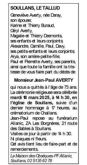 Cet espace « condoléances » est dédié à la mémoire de Monsieur Jean-Paul AVERTY.