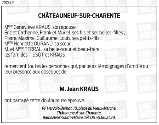 Cet espace « condoléances » est dédié à la mémoire de Monsieur Jean KRAUS.