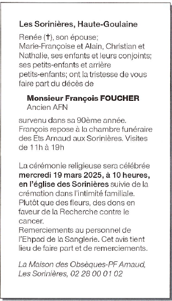 Cet espace « condoléances » est dédié à la mémoire de Monsieur François FOUCHER.