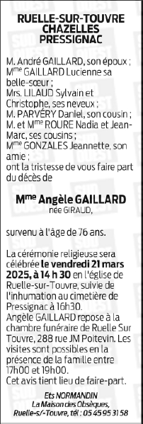 de Madame ANGELE GAILLARD née GIRAUD