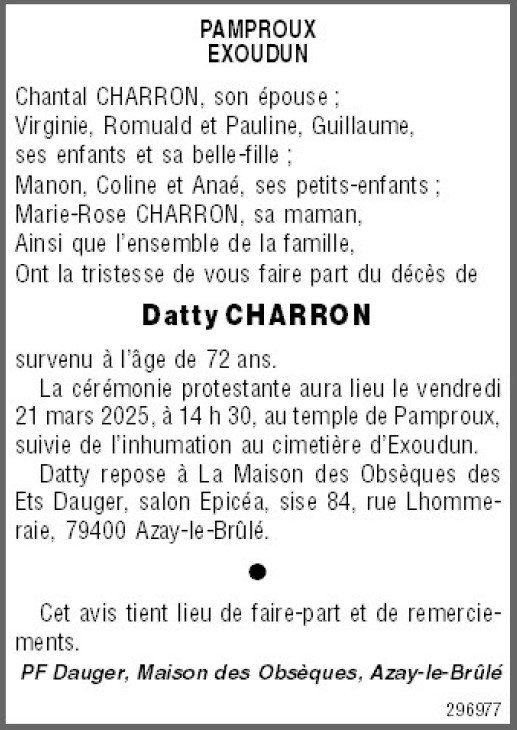 Décédé à Pamproux (79800) le lundi 17 mars 2025