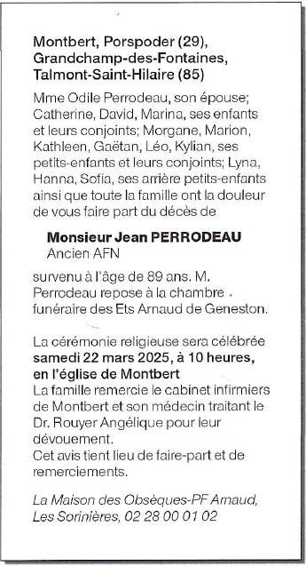 Cet espace « condoléances » est dédié à la mémoire de Monsieur Jean PERRODEAU.