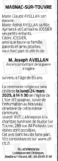 Décédé à Magnac-sur-Touvre (16600) le mercredi 19 mars 2025