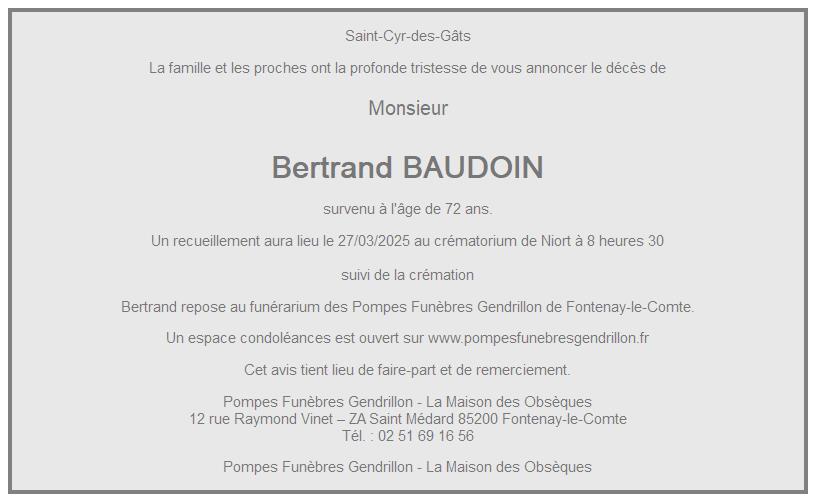 Cet espace « condoléances » est dédié à la mémoire de Monsieur Bertrand BAUDOIN.