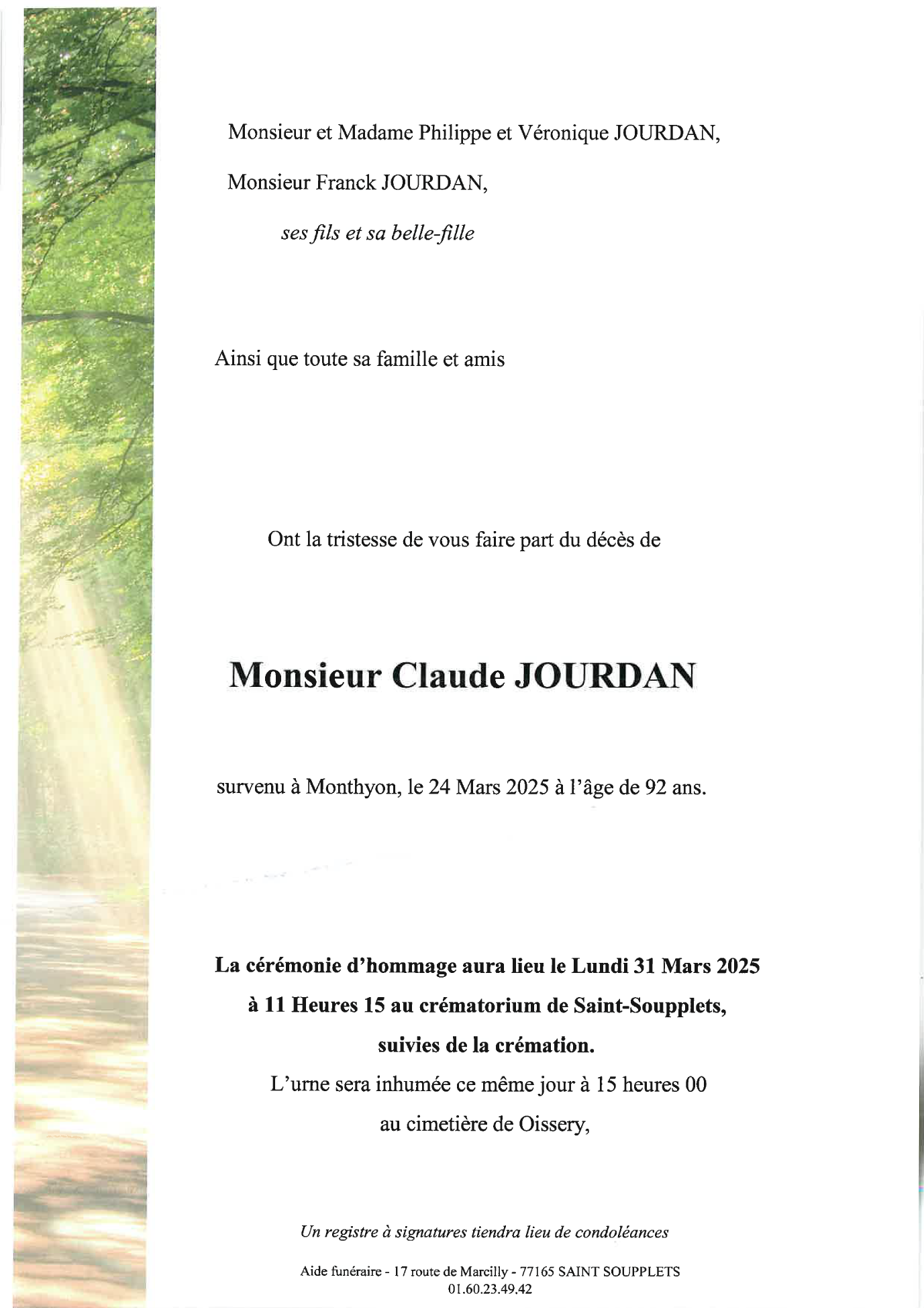 Cet espace « condoléances » est dédié à la mémoire de Monsieur Claude JOURDAN.