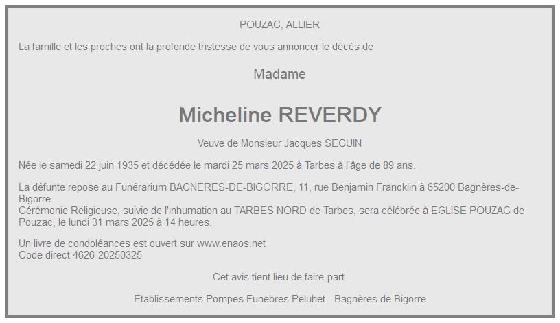 de Madame Micheline SEGUIN née REVERDY