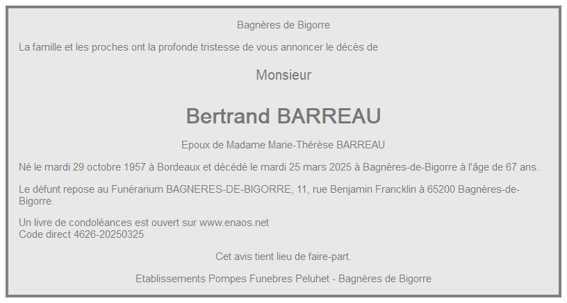Cet espace « condoléances » est dédié à la mémoire de Monsieur Bertrand BARREAU.