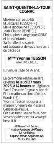de Madame Yvonne TESSON née FORGENEUF