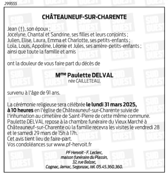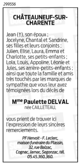 de Madame Paulette DELVAL née CAILLETEAU