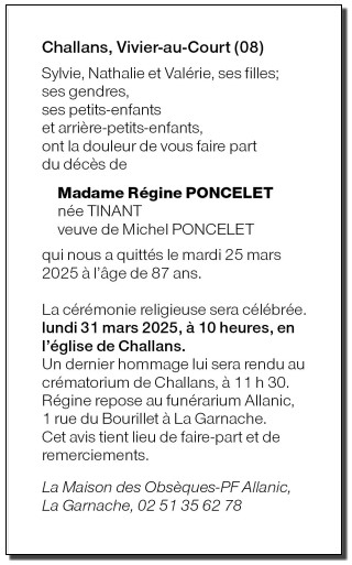 de Madame Régine PONCELET née TINANT