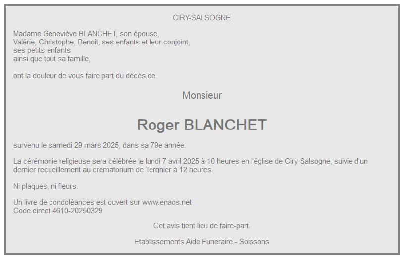 de Monsieur Roger BLANCHET