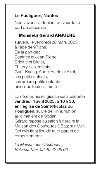 de Monsieur Gérard ANJUERE