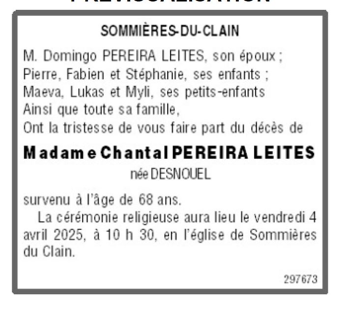 de Madame Chantal PEREIRA LEITES née DESNOUEL