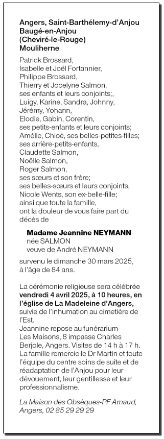 de Madame Jeannine NEYMANN née SALMON