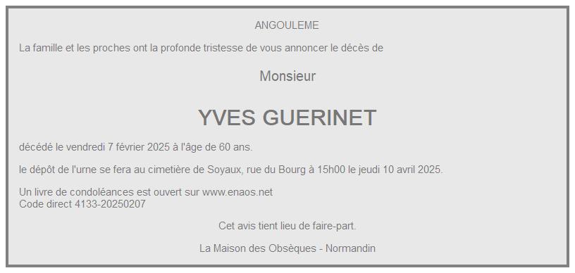 de Monsieur YVES GUERINET