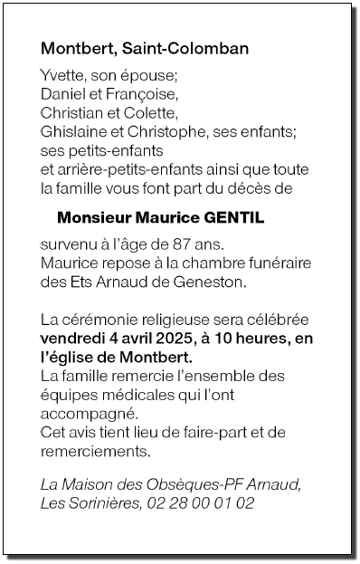 de Monsieur Maurice GENTIL